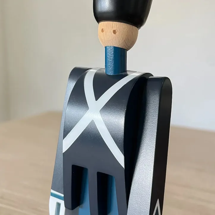 Fejr tronskiftet med denne Limited Edition Garder fra Kay Bojesen. Klædt i blå uniform, udstyret med tekstilflag og gevær, er denne håndmalede figur i bøgetræ et tidløst kunstværk.